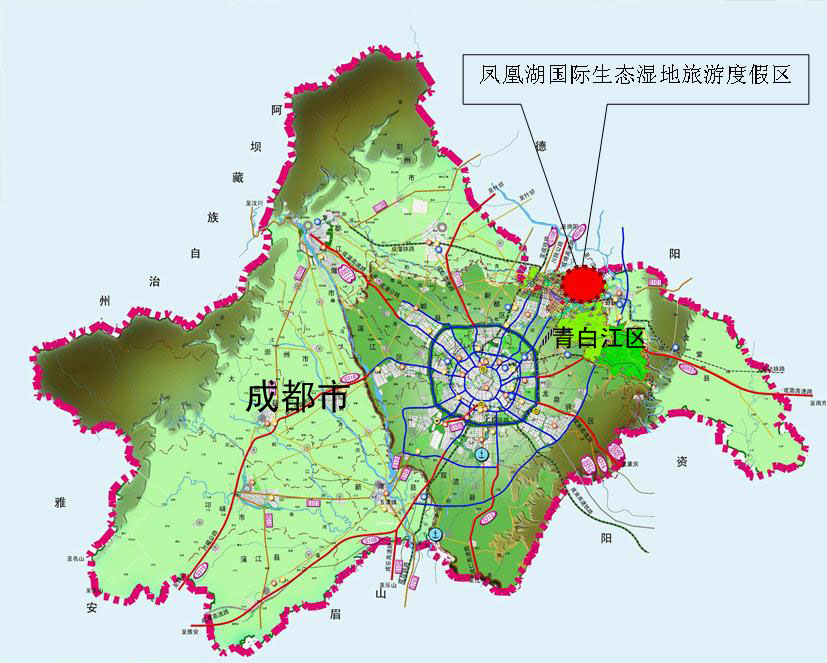 规划范围:成都市青白江区凤凰湖国际生态湿地旅游度假区位于青白江区主城区北面,绕城路以北,青白江大道北延线以西,区界以内,规划面积约10平方公里。目前,该区域内1平方公里范围已基本建成。